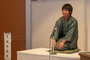 懇親会では、今回は現役生の愛知大学落語研究会 笑風亭風笑さんの落語鑑賞、